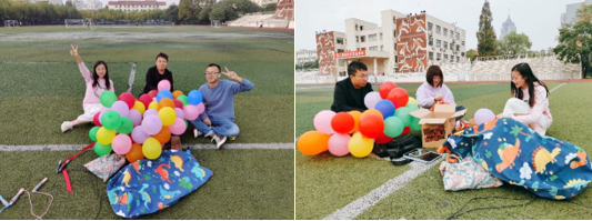 在游戏过程中,由一男一女组成的第二队势不可挡,在每个项目中几乎都勇夺第一,并最终拔得头筹,获得了本次趣味运动的第一名。游戏结束后,主持人宣布了比赛结果,王婷婷老师依次为各队合影留念。