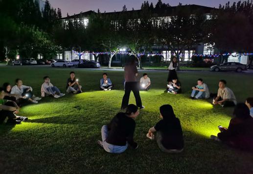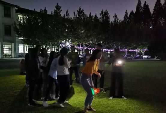 同学们活跃的身影也带动了老师们参与的热情。在闵行场,李小玲老师也投入到游戏活动中,鲜跃仲和王毅老师则成了全程拍照的志愿者;中北场灯光微弱,王婷婷老师和辅导员们则成了灯光师。大家欢声笑语不断,其乐融融。